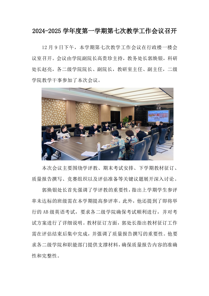 2024-2025学年度第一学期第七次教学工作会议召开