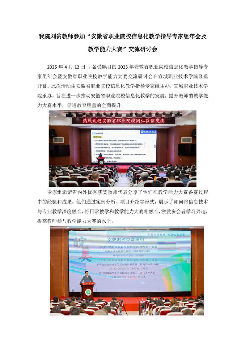我院教务处刘贫教师参加安徽省职业院校信息化教学指导专家组年会及教学能力大赛交流研讨会