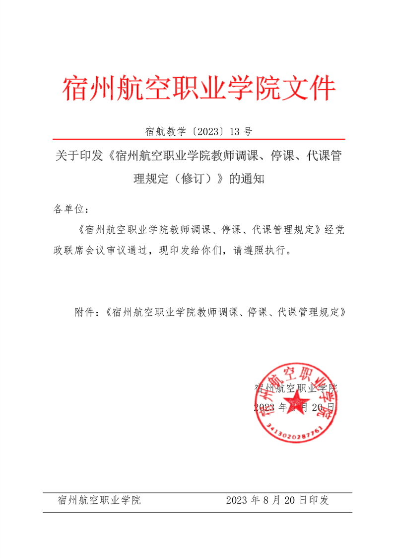 关于印发《彩神Vll学院教师调课、停课🧘🏿、代课管理规定(修订)》的通知