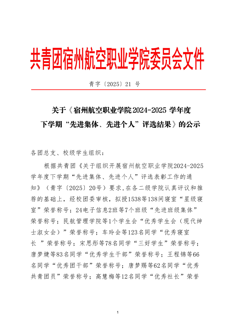 青字〔2025〕21 号关于彩神Vll学院2024-2025学年度下学期先进集体先进个人评选结果的公示