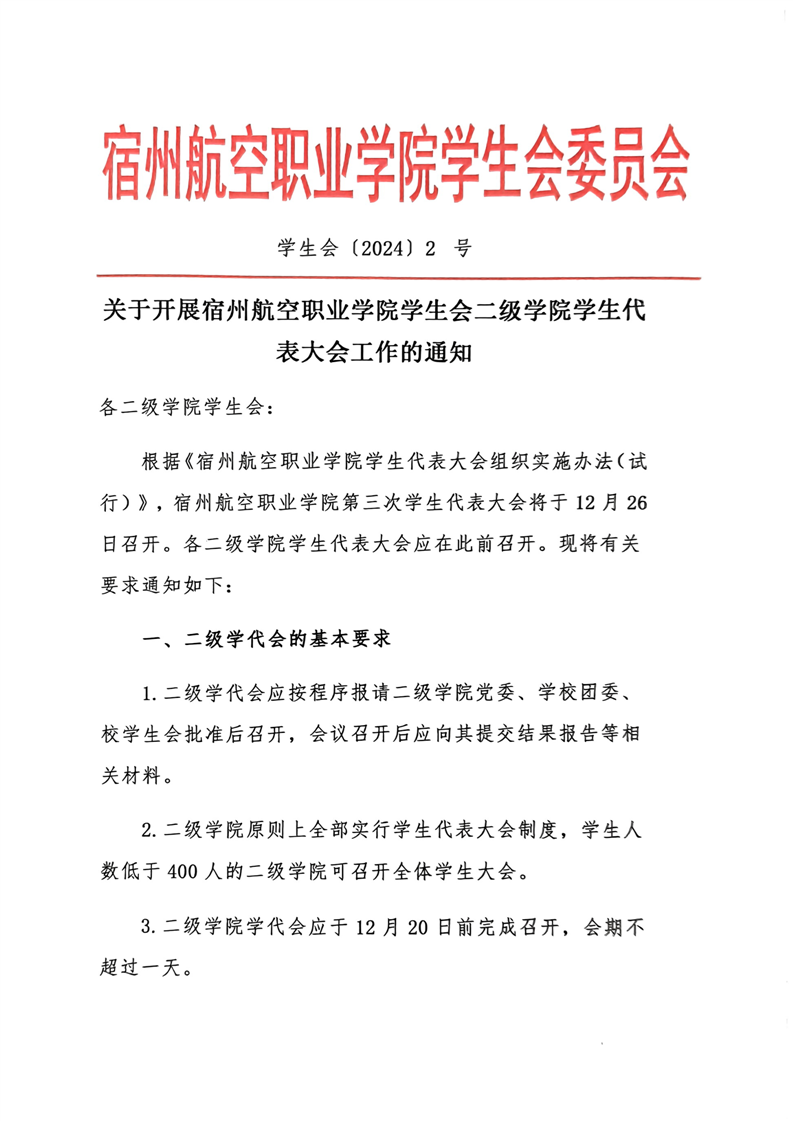 学生会〔2024〕2 号关于开展彩神Vll学院二级学院学代会工作通知