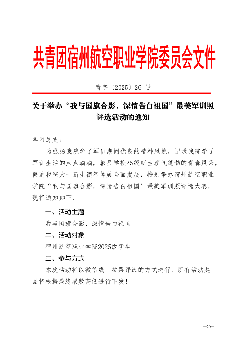 青字〔2025〕26 号关于举办“我与国旗合影,深情告白祖国”最美军训照评选活动的通知