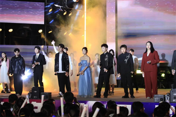 夜幕璀璨下🦸,一曲接着一曲,多种风格的精彩演绎令现场高潮迭起🏬👰🏿♂️,尖叫声、呐喊声🫰🏼、助威声、欢呼声不绝于耳,更有来自“铁粉”的花式应援⚠️,每一位师生都专注聆听、沉浸其中。