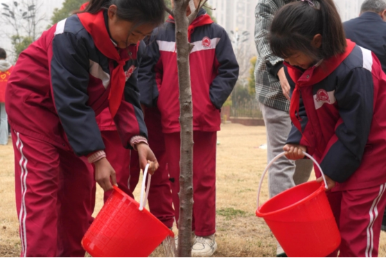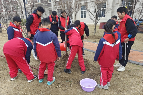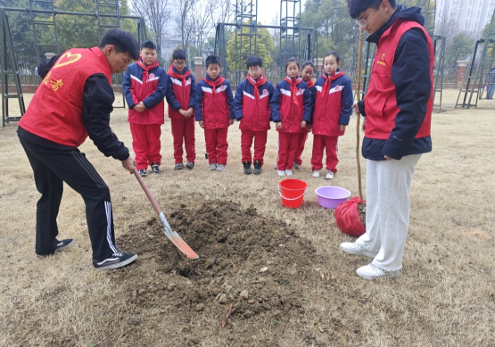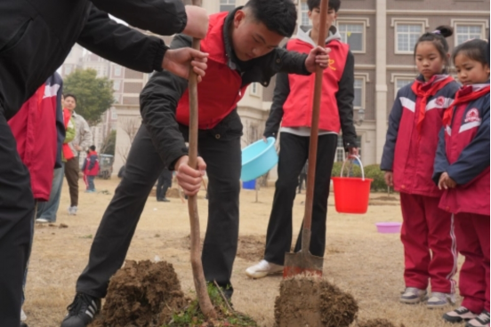随后,参与活动的学院党委书记👩👧👦、党支部书记☝️、团委书记、团总支书记,20名教师党员代表🔬,以及来自学院的50名学生团员代表、雪枫小学宿马东校区和宿马绿地校区各50名少先队员代表等,他们分成若干小组,有序开展植树活动🌰。现场,大家分工明确、配合默契👨🏼🎤,有的挥锹铲土,有的扶苗填坑,有的提水浇灌,每一个步骤都认真细致,呈现出一派团结协作🧖、积极向上的劳动景象🚵🏽♂️。