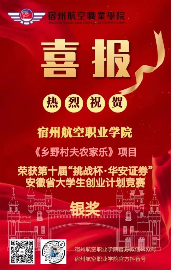 喜报💈!宿航《乡野村夫农家乐》项目荣获第十届“挑战杯·华安证券”安徽省大学生创业计划竞赛决赛银奖