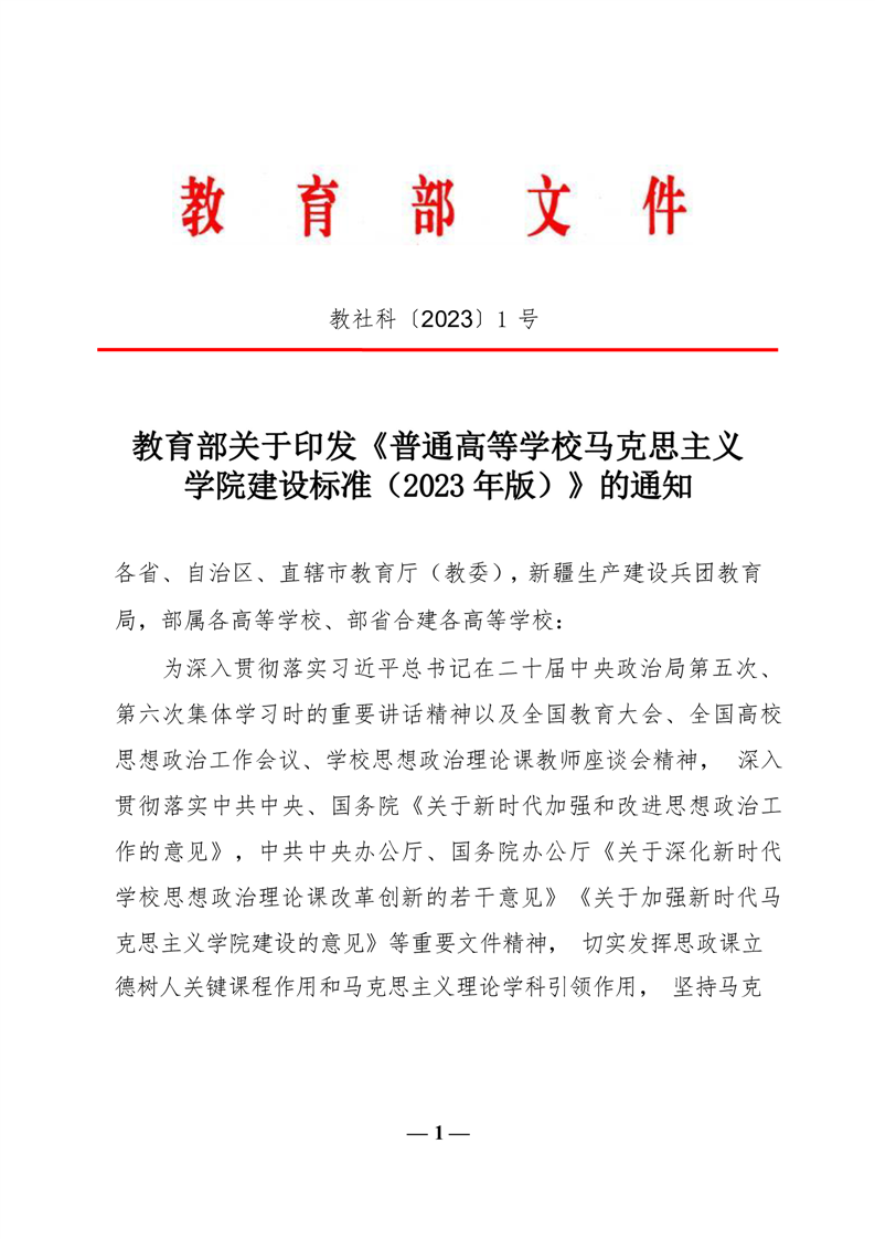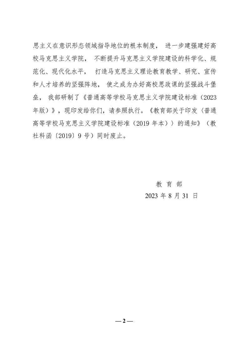 教育部关于印发《普通高等学校马克思主义学院建设标准(2023年版)》的通知的