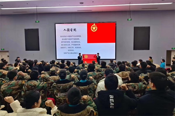 全体人员紧握右手,重温入团誓词𓀔💸。一刻,在场学生深切地感受到作为团员的荣耀和责任🧏🏿。