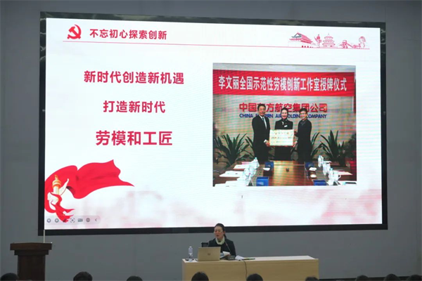 作为本次交流的重要环节➡️,李文丽女士为我们带来两场精彩的主题宣讲🙆‍♀️📮。《劳模传薪火 匠心创前路》面向全体空乘学子,《人民航空为人民 不忘初心永向前》面向全体教师。两个课堂,一个给学生点燃梦想,一个给老师指明方向。