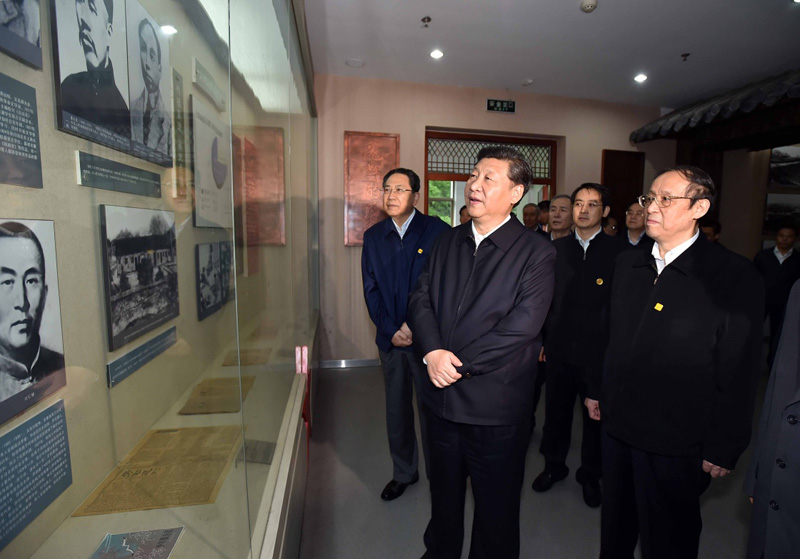 这是4月24日上午𓀄,习近平在六安市金寨县参观金寨县革命博物馆。新华社记者李涛摄