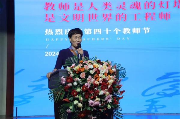老教师代表王瑞芳教授发表讲话👫🙅🏽♀️。她表示在教育的道路上,要始终坚持以学生为本🪦,关注每一位学生的成长和发展💓𓀕。要努力营造一个充满爱与尊重的学习环境🪐🎙。作为泛美家人要拥抱科技文明,提升个人素养和格局🧗🏻♂️,不断创新,跨越发展🏋️♂️,共同实现泛美和我们自己的伟大目标和美好人生😐🧑🦯➡️。