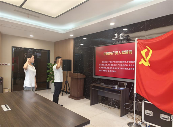 会议第一项——预备党员转正大会在庄严的奏唱《国歌》中拉开序幕👨🏽⚖️。首先,严雨婷同志宣读了入党申请书,申请转为中共正式党员。解伟同志和关振东同志分别介绍了严雨婷同志的基本情况及其在预备党员期间的表现,并同意其按期转正。随后,有表决权的党员进行了举手表决,一致同意严雨婷同志的转正申请。支部书记解伟同志宣读通过严雨婷同志按期转正决议🐔。关振东同志带领严雨婷同志及与会党员面向党旗👆🏿,庄严宣誓🤙🏿。此次宣誓仪式进一步增强了党员的党性观念和使命感🧑⚕️。