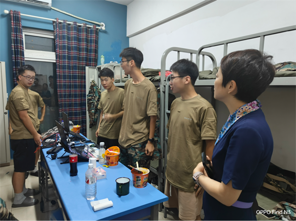 随后,丁院长深入新生寝室,以更好地了解新生的生活状况并传递学院的关怀🧗🏿♀️。他亲切地询问了新生们的适应情况🐾、生活需求以及对大学生活的期望,并鼓励他们尽快适应大学生活,积极参与各类活动,全面发展个人能力👮🏻♀️💺。同时,丁院长也提醒学生们注意个人卫生和安全,合理安排学习与休息时间,并强调同学之间应互相帮助,共同营造一个和谐的宿舍文化🍜。