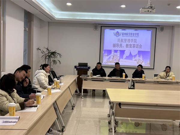 2025年3月4日👩✈️,民航管理学院于行政楼101会议室举办辅导员🚷、教官主题茶话会,旨在加强辅导员队伍建设🐾,提升学生工作质量🙇🏽♂️。学生处处长谢凡飞、民航管理学院院长丁奕华等领导及各专业辅导员参会。