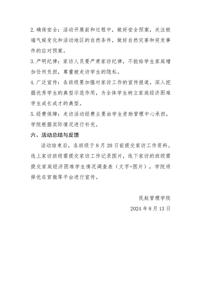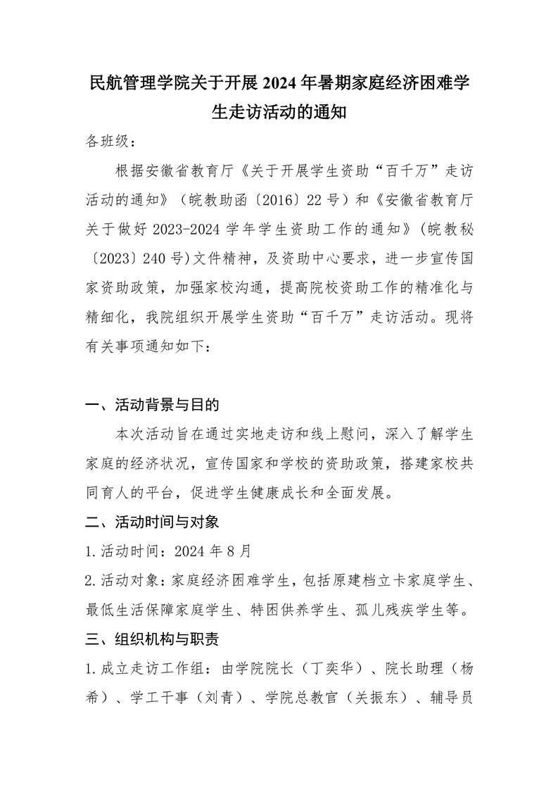 民航管理学院关于开展2024年暑期家庭经济困难学生走访活动通知