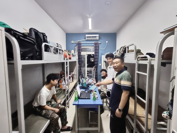 夜幕降临✔️,王院长和苏炜老师再次走进学生宿舍🔈。每到一间宿舍,王院长都热情地和同学们打招呼🐻,仔细查看宿舍的卫生和安全设施。他坐在同学们中间,与大家拉家常📙、聊学习、谈生活🔛,关切地询问同学们在宿舍生活中是否遇到困难🪥,对学院的管理和服务有什么意见和建议。