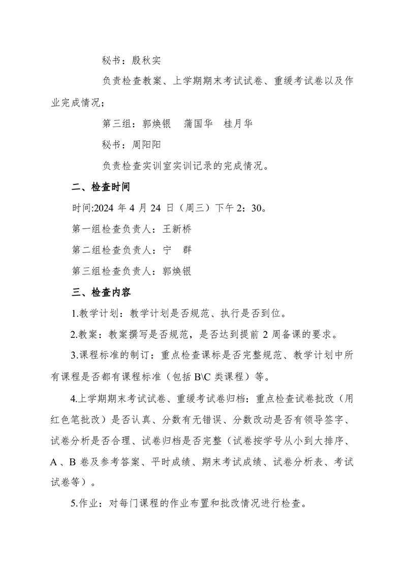 关于开展2023-2024学年第一学期期中教学检查工作的通知