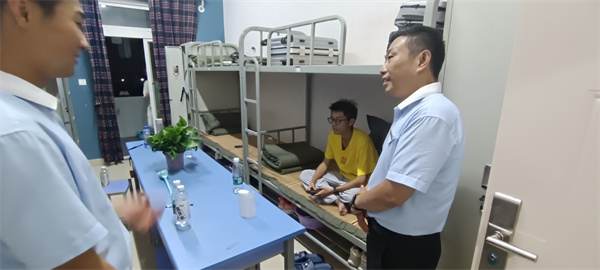 2023年9月1日📂🧑🏼🎄,为了了解刚开学入住学生的适应情况,信息工程学院负责人王新桥,学工干事苏炜,教官闵、朱鹏飞前往学生宿舍看望🤛🏼,对同学们进行慰问和关心🍎。