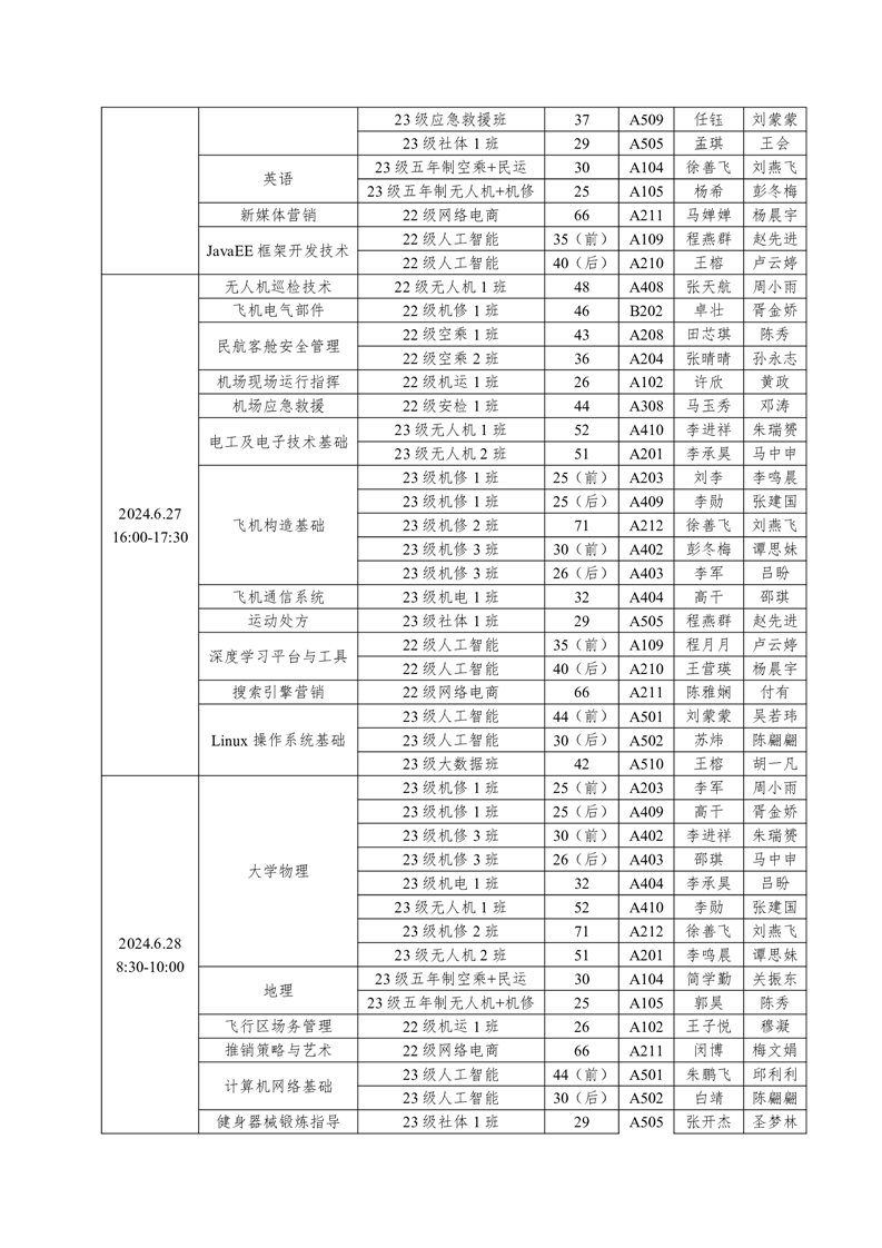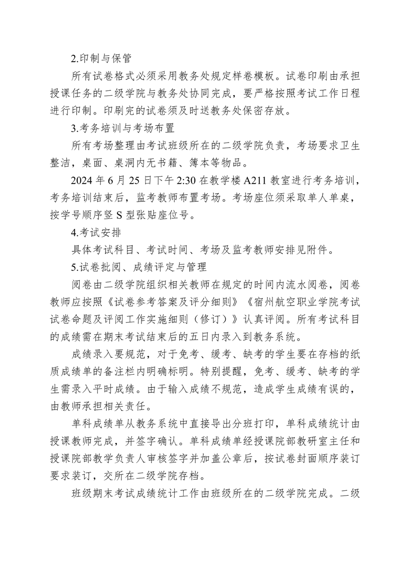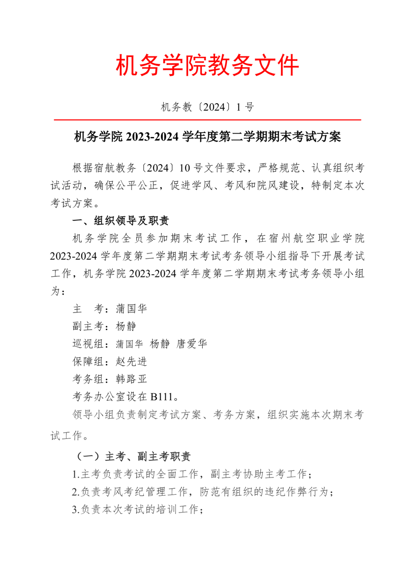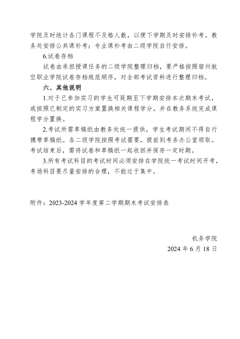 机务学院2023-2024学年度第二学期期末考试方案