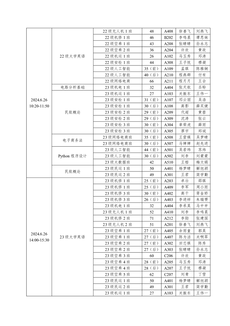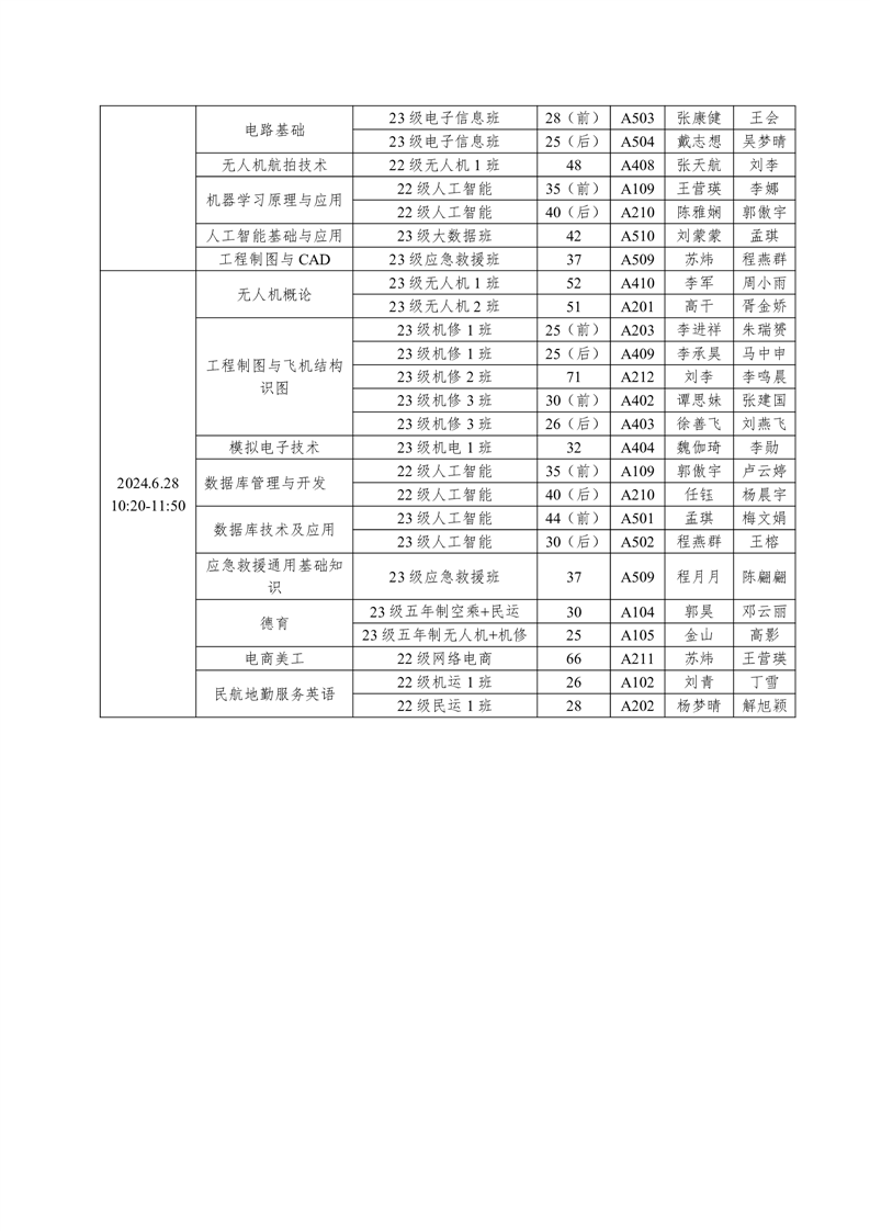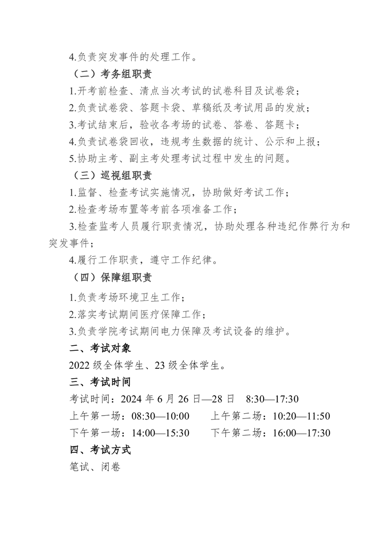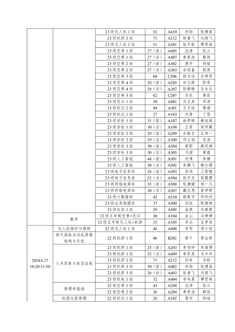 机务学院2023-2024学年度第二学期期末考试方案