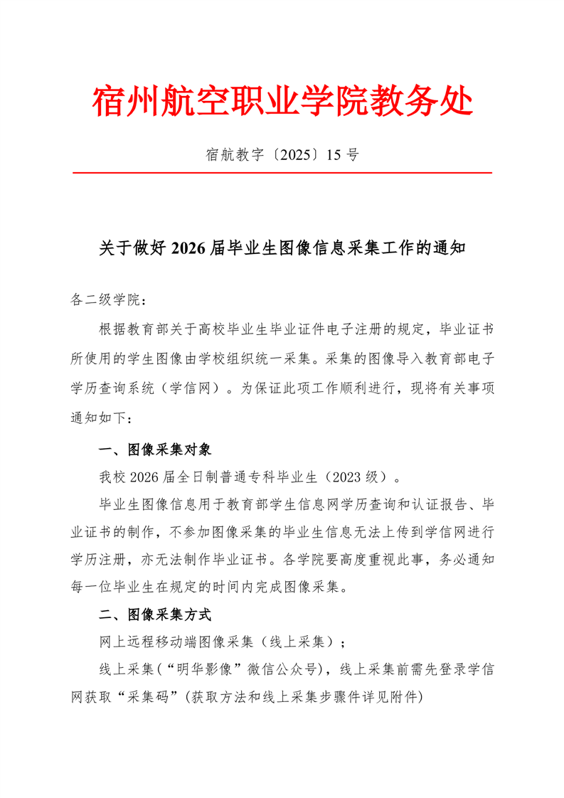 关于做好2026届毕业生图像信息采集工作的通知