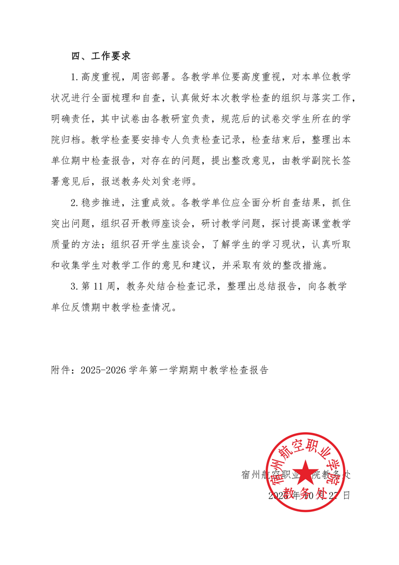 关于做好2025-2026 学年第一学期期中教学检查工作的通知