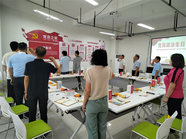 随后,全体党员在徐善飞同志的带领下,面向鲜红的党旗,举起右拳,庄严宣誓。铿锵有力的誓词,彰显着每一位党员不忘初心🎇、矢志奋斗的坚定决心🤽🧑🏼‍🔬。2名党员代表与大家开展谈心交流活动,回忆入党经历和党组织多年的培养,并结合工作实际,分享了“生日”感言。