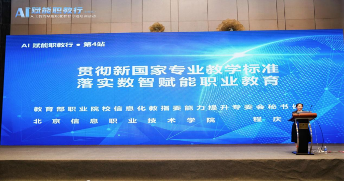 教育部职业院校信息化指导委员会能力提升专项秘书长程庆梅进行了《贯彻新国家专业教学标准 落实数值赋能职业教育》的分享🧜🏿♂️,从宣传贯彻新发布的国家专业教学标准、促进数字化智能化职业教育专心变革两方面进行了深入讲解。