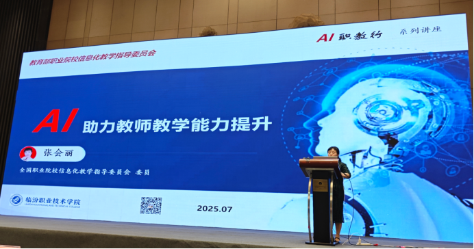 全国职业院校信息化教学指导委员会委员张会丽从时代机遇 使命担当、破局路径 工具实战、向新而行 育人为本三方面进行了《AI助力教师教学能力提升》培训。