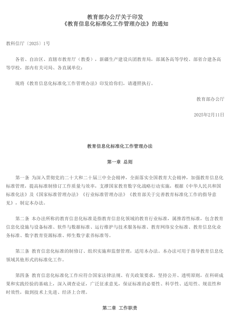 教育部办公厅关于印发《教育信息化标准化工作管理办法》的通知