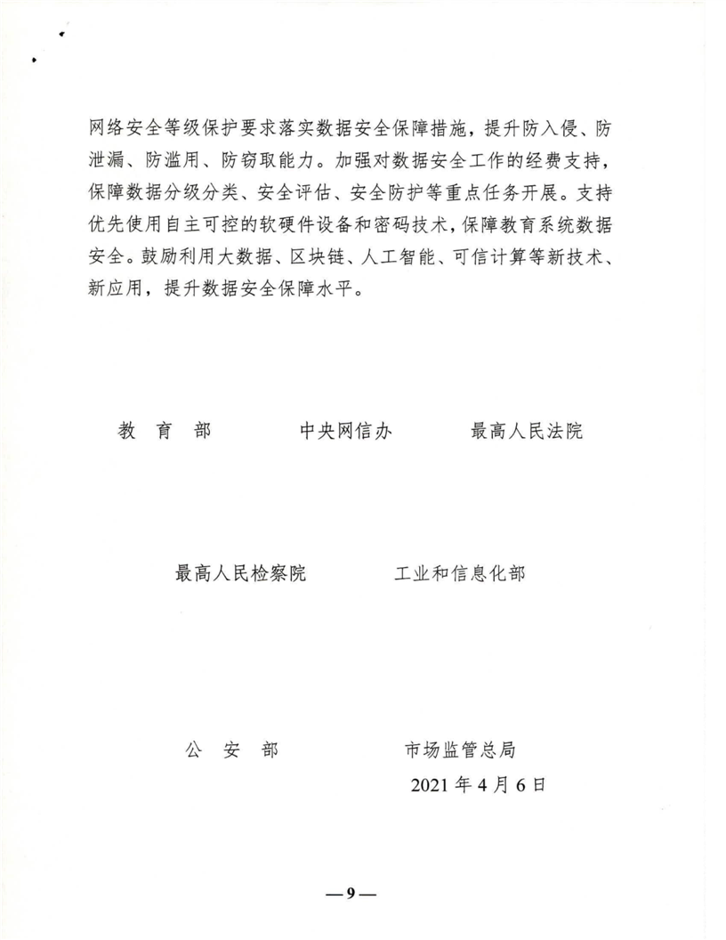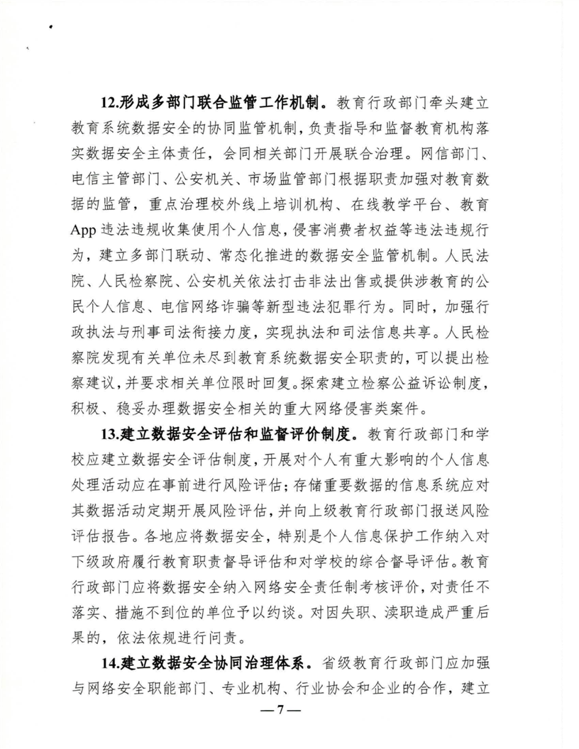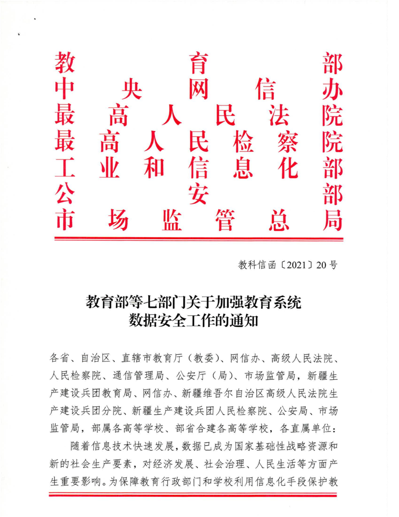 教育部等七部门关于加强教育系统数据安全工作的通知