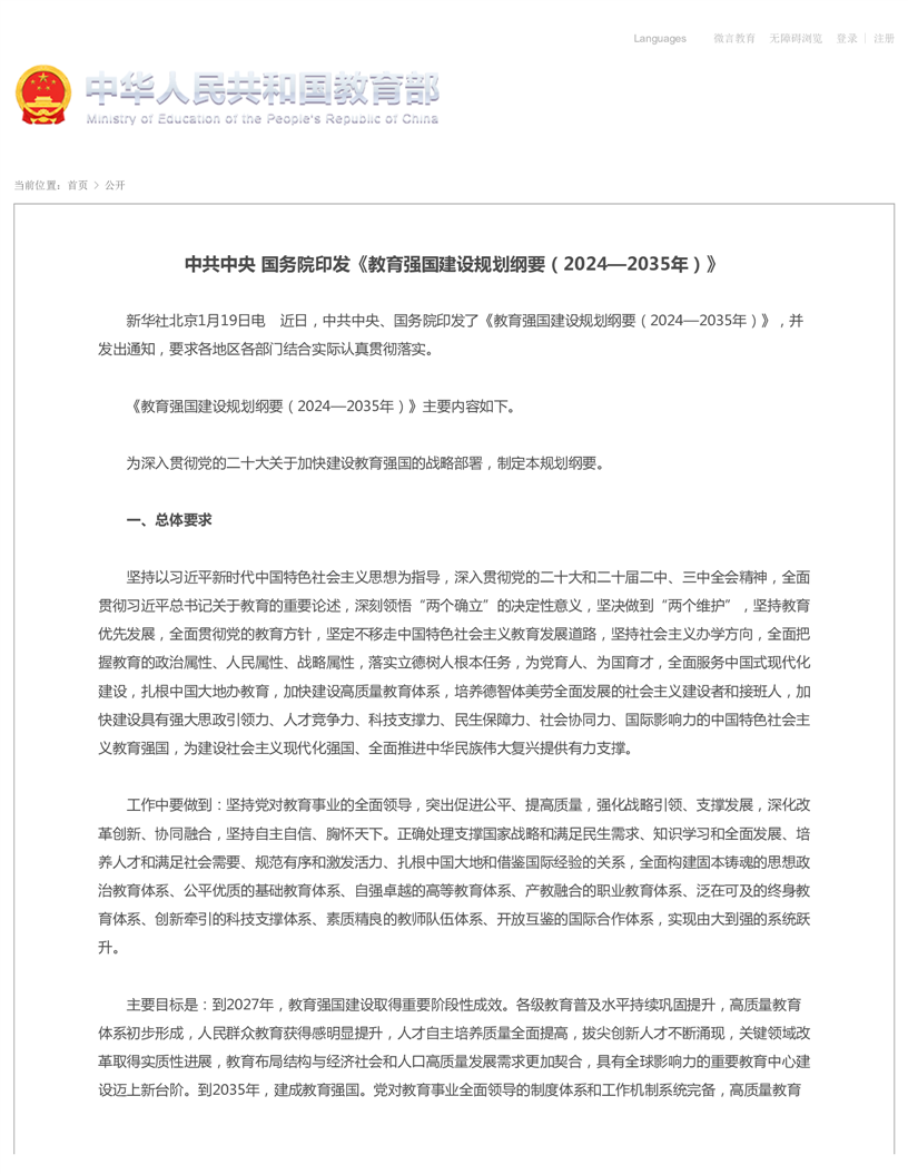 中共中央 国务院印发《教育强国建设规划纲要(2024—2035年)》