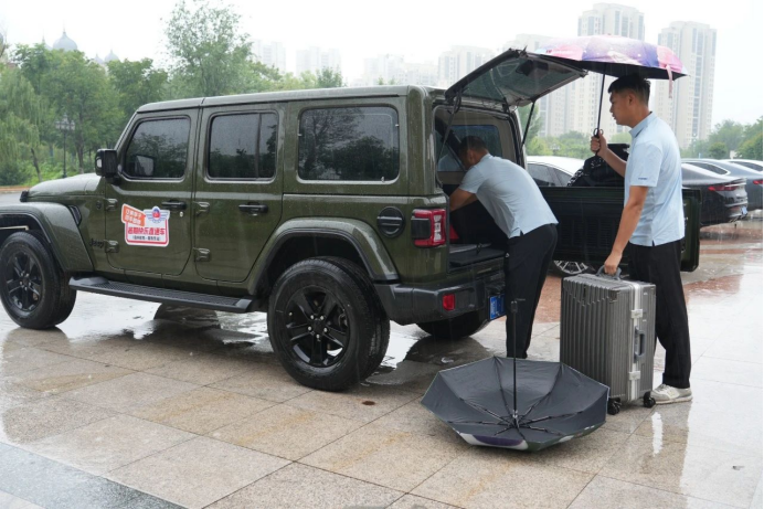 暴雨如注,雨幕如织😗,食堂门口与宿舍楼下👰🏼♂️,老师们早已在滂沱大雨中守候多时🚞。车身两侧,一张张醒目的标签在雨水中格外温暖——“泛美学子,招手即停——暑期快乐直通车”⚈。老师们提前腾空后备箱⚡️,衣角被雨水浸透,只为让每一位奔赴归途的学子在风雨中找到最安稳的依靠👨🏼💼。