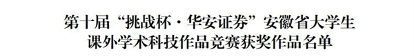 喜报!我院在第十届“挑战杯·华安证券”安徽省大学生课外学术科技作品竞赛中获得佳绩