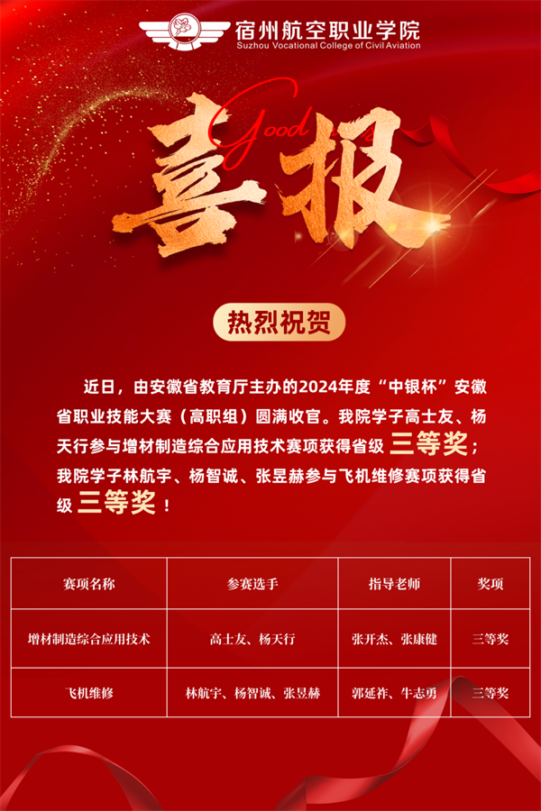 我院参赛学子充分发挥精益求精、严谨细致🚅、务实踏实的作风🛼,在机务学院教师张建国、郭延祚、牛志勇、李承昊👬,信息工程学院教师王营瑛👩❤️👨、张开杰、张康健、任学俊的指导下,与省内各市所高等职业院校参赛队伍进行激烈角逐🤶🏻,凭借着深厚的知识储备🤽🏽、卓越的技术水平、熟练的技能操作及良好的职业素养沉着应战,分别荣获“飞机维修赛项”省级三等奖和“增材制造综合应用技术赛项”省级三等奖的佳绩📏!