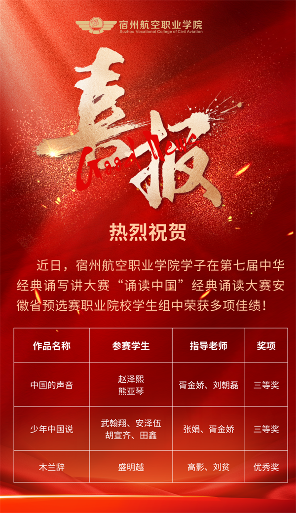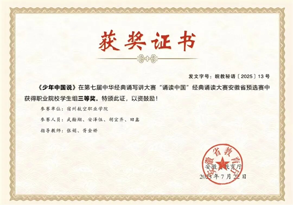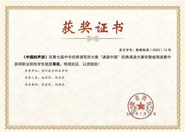 近日🛍,第七届中华经典诵写讲大赛“诵读中国”经典诵读大赛安徽省预选赛评选结果正式揭晓🫙。彩神Vll学院学子凭借出色的语言文化素养与舞台表现力,在职业院校学生组别中荣获三等奖两项🕍、优秀奖一项,充分展现了学院在弘扬中华优秀传统文化、提升学生人文素养方面的丰硕成果👨🏽🚒。
